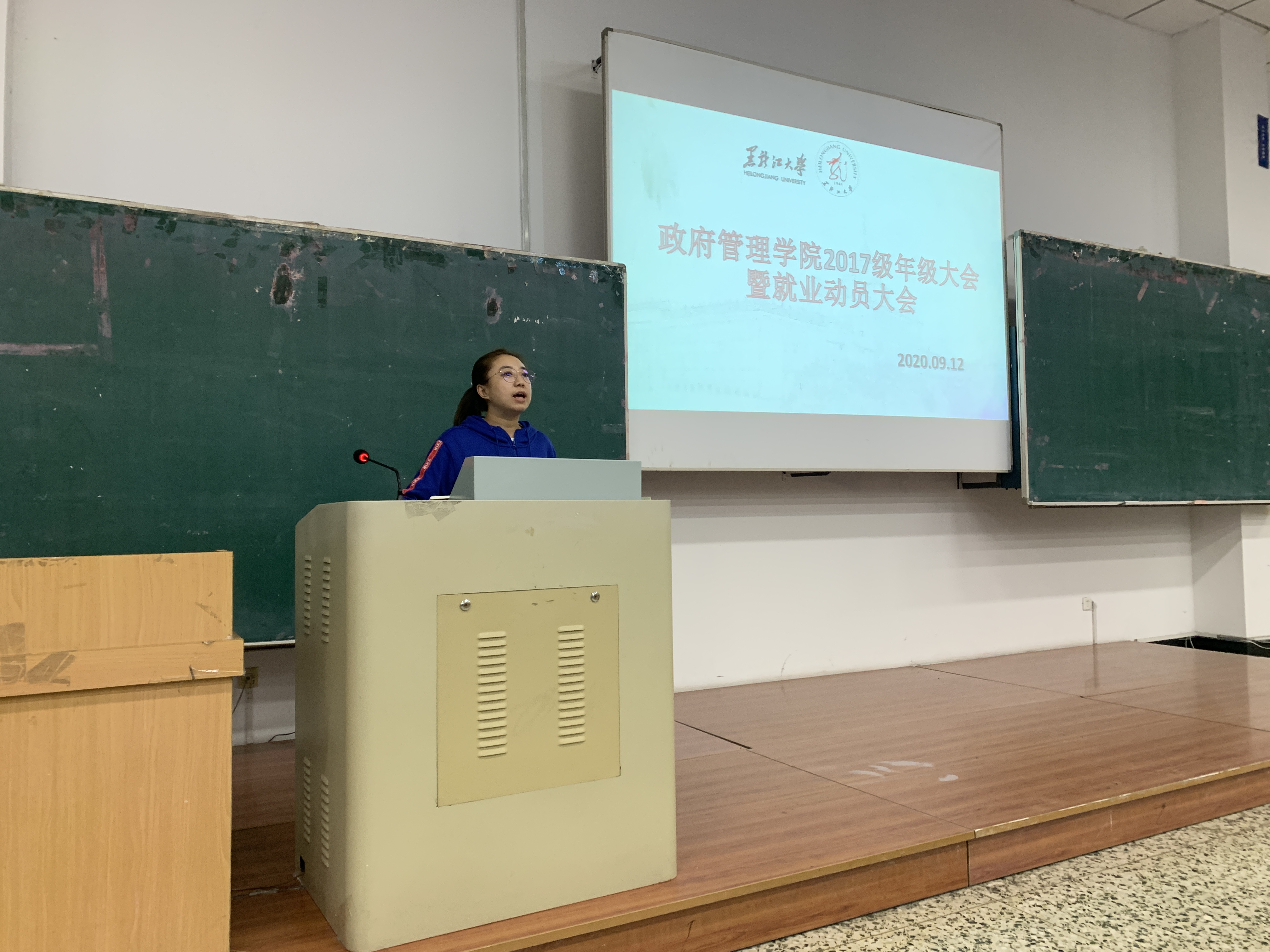 为培养2017级学生自主就业意识,让学生了解就业相关知识,保障疫情防控背景下的学生在校纪律,黑龙江大学政府管理学院于9月14日晚19:00召开了2017级年级大会暨就业动员大会。此次会议由2017级辅导员范慕乔老师主持,政府管理学院2017级全体学生参加。