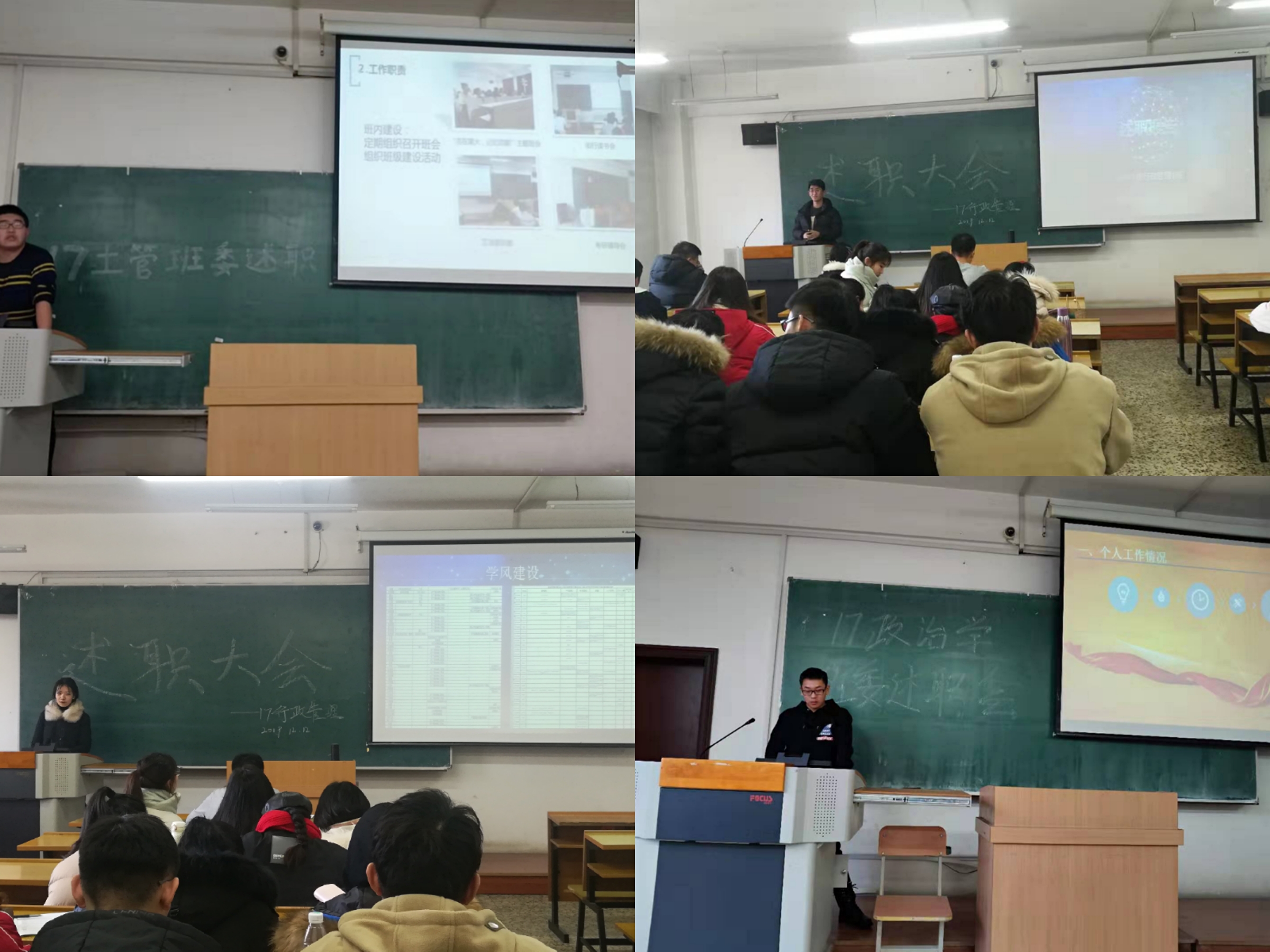 为打造更加透明公开的班委工作程序,提高班级干部的工作能力,增强班级凝聚力,加强班级同学们的思想建设,同时使同学们可以更加了解每位班委的日常,政府管理学院2017级各专业于2019年12月5日至17日分别在汇文楼教室召开了各个专业班委述职大会。本次述职会由各专业的班委进行述职,各专业班级同学全员出席。