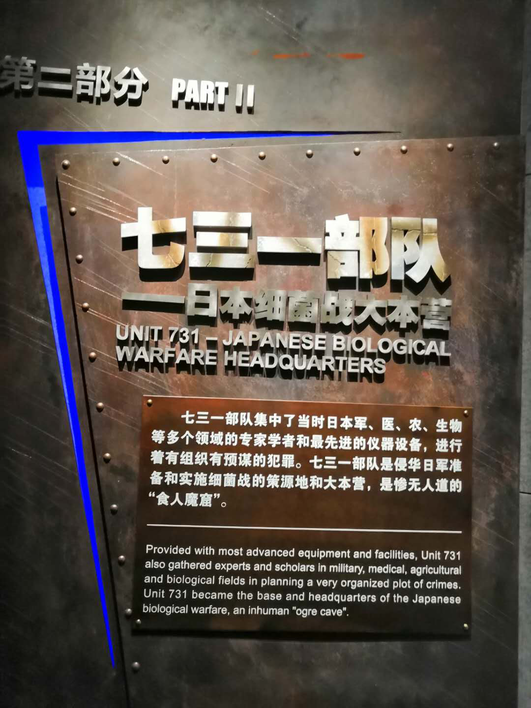侵华日军第731部队罪证陈列馆位于哈尔滨市平房区,是一座矩形黑灰色馆舍,它真实地还原侵华日军进行人体实验和细菌战的反人类罪行。在途中由老师向大家简要介绍这段历史并告知同学们参观展馆的注意事项。