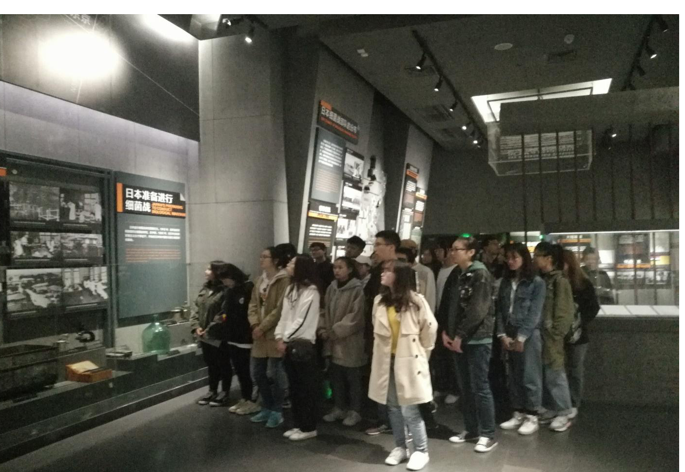 到达目的地后,同学们在讲解员的带领下参观各个展厅,了解侵华日军细菌战史实、731部队细菌战研究与实施等日本侵华罪行。在陈列馆中同学们自觉放轻脚步,认真聆听馆内讲解员对这段沉痛历史的讲解。参观过程中令同学们感触最深的是馆中展出的当年七三一部队在中国建立实验室时所使用的器具。从冰冷的试管、显微镜以及做手术的工具到观看真正人体实验的“解剖实验室”……每一件展品都讲述着侵华日军惨绝人寰的罪行和罹难者们饱受折磨的苦难史。在这些历史罪证面前,同学们的内心久久不能平静,愤懑之情难以言表,仿佛一幕幕触目惊心的事实就在眼前。
