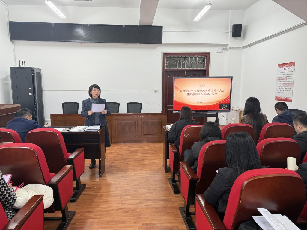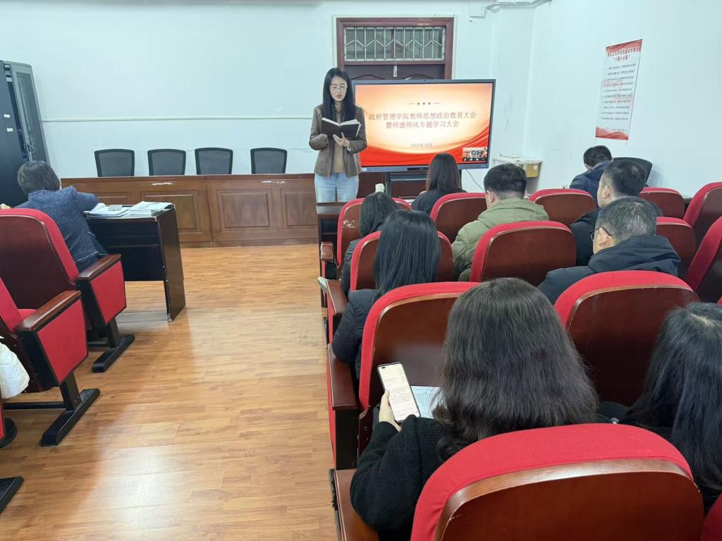 此次大会进一步统一了学院教师的思想认识,强化了师德师风建设的自觉性与主动性。下一步,政府管理学院将持续深化师德师风建设,打造一支政治素质过硬、师德师风高尚、业务能力精湛的教师队伍,为学院高质量发展与人才培养工作提供坚实保障。(政府管理学院供稿)