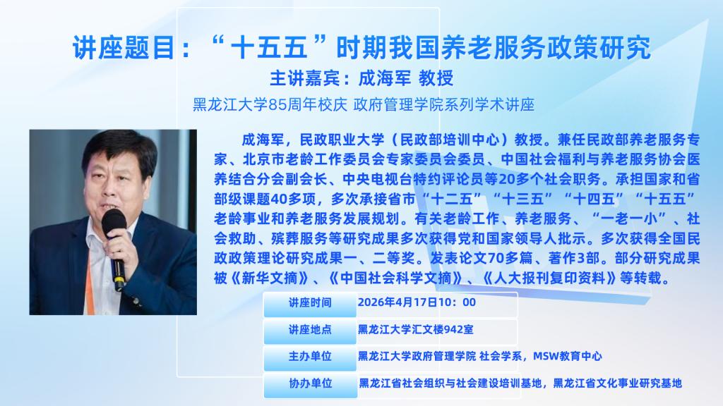 黑龙江大学85周年校庆——政府管理学院系列学术讲座