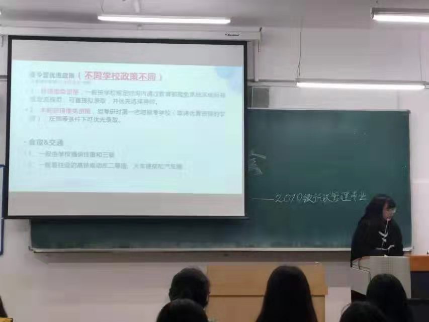 为使大一新生尽早制定职业生涯规划、明确目标、精准定位、早作准备,政府管理学院2019级各专业于2019年10月15日-10月24日分别在汇文楼各专业自习室召开了5场保研经验交流分享会。本次交流会的主讲嘉宾为2016级刘贤生、卢奕等8名优秀推免生。
