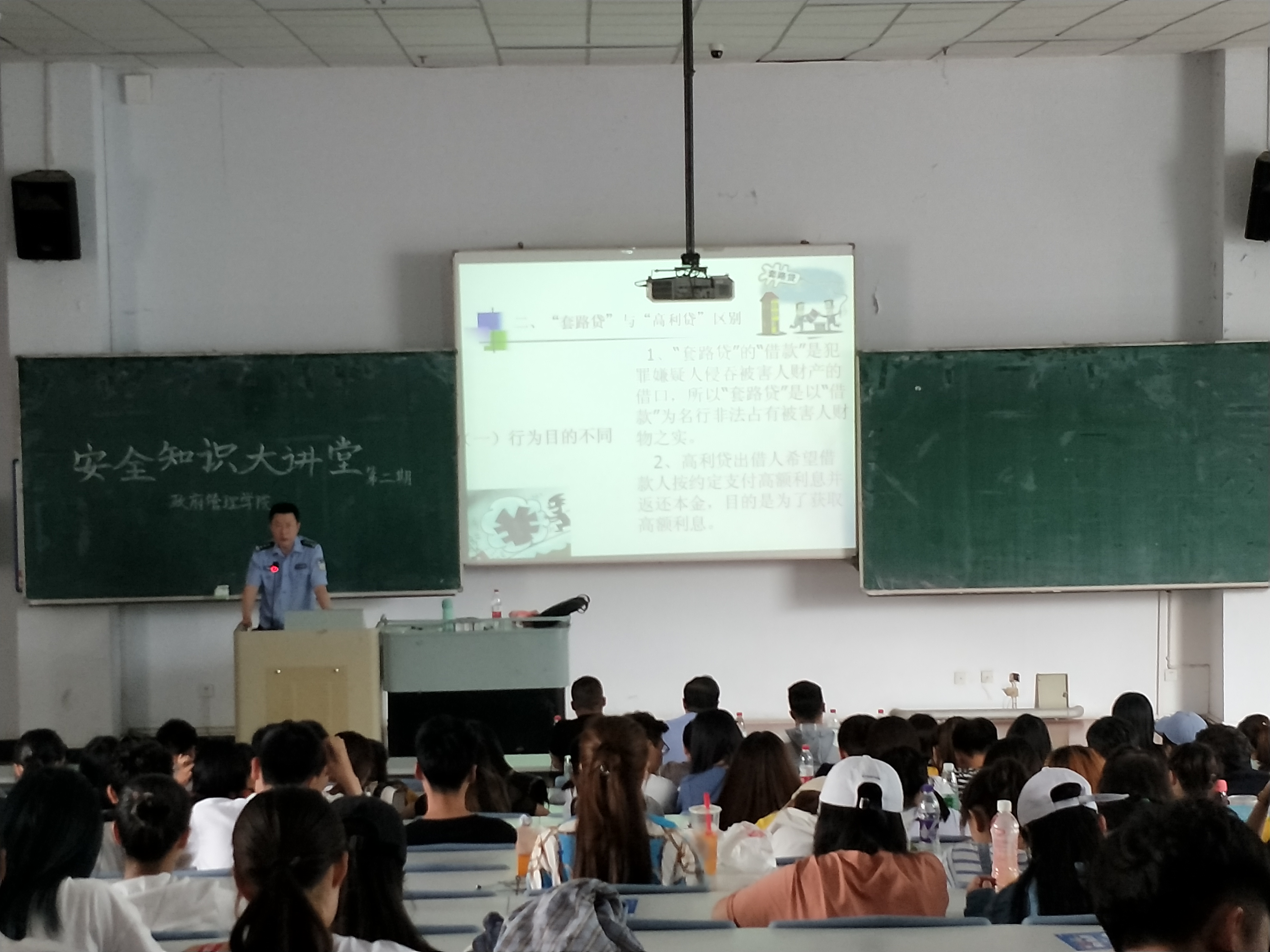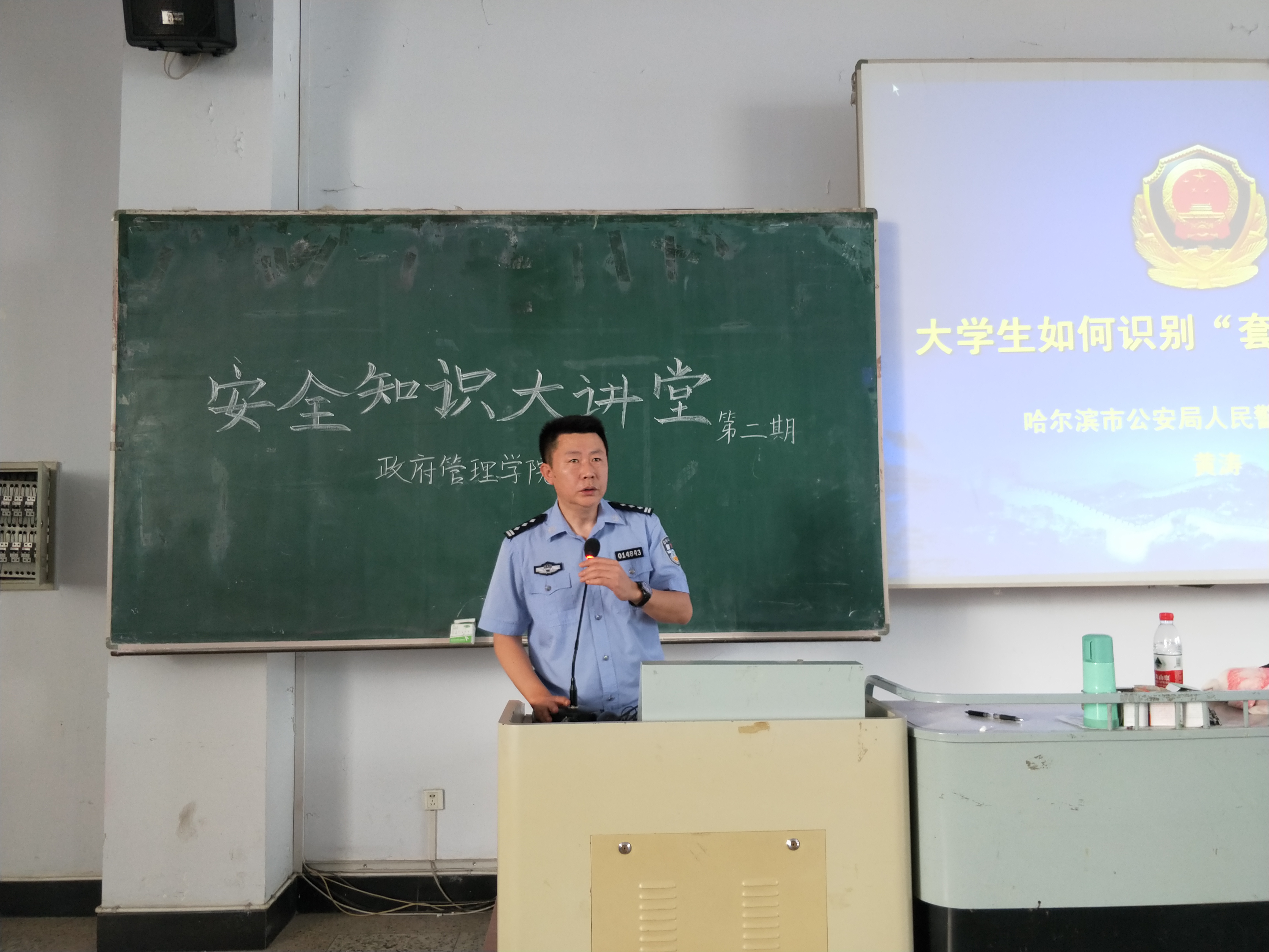 为进一步提高当代大学生的安全防范意识,更好的宣传普及金融安全知识,帮助同学们提高识别套路贷犯罪行为的能力,政府管理学院于2019年6月12日15点30分在汇文楼220教室举办以“拒绝套路贷,不做受害人”为主题的安全知识讲座。本次活动的主讲人是来自哈尔滨市公安局人民警察训练支队的黄涛警官,政府管理学院2018级全体同学参加了本次活动。