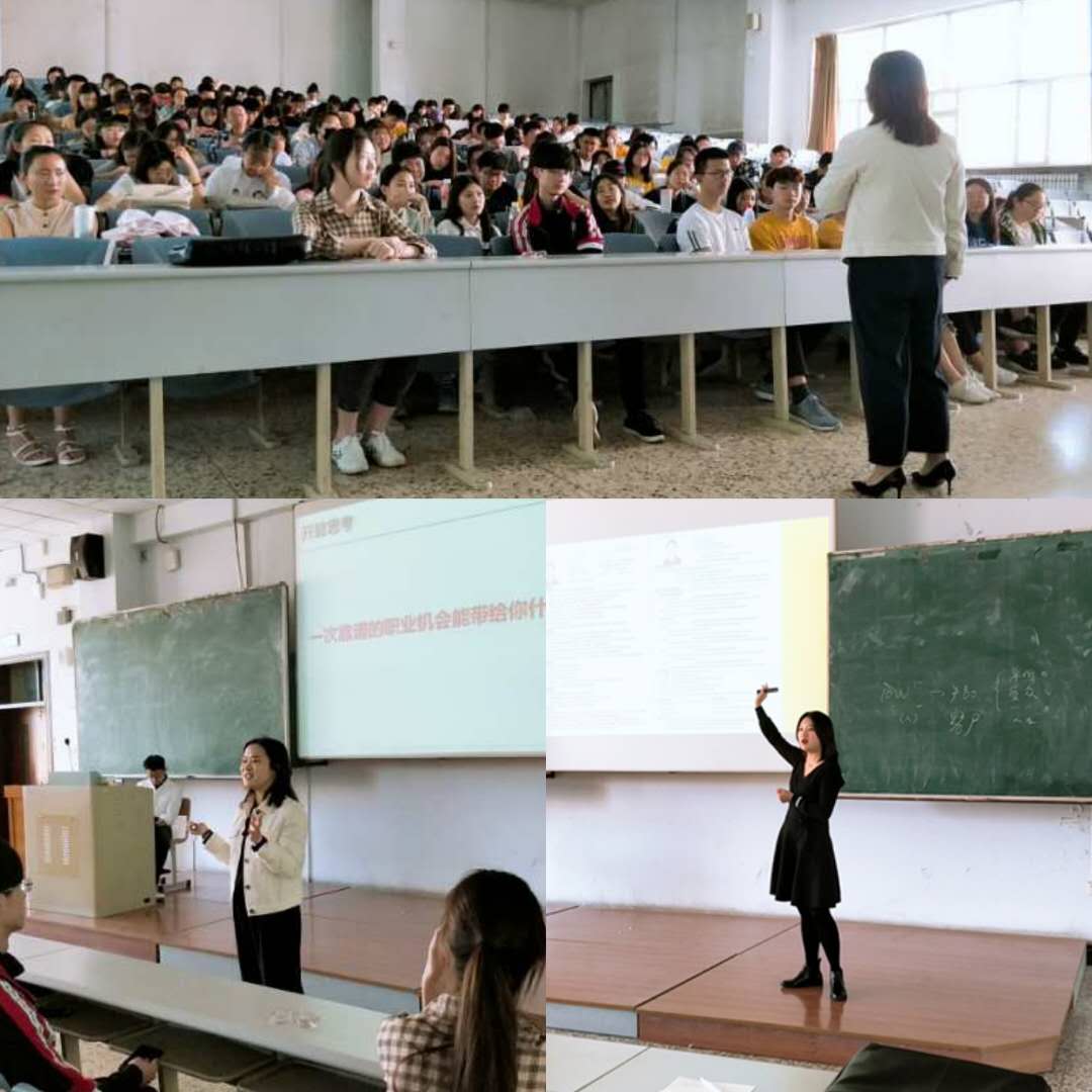 为了使我院学生在本科阶段对于未来职业有明确精准定位,有目标、有方法地施展自己的才能,做好未来的职业规划。政府管理学院于2019年5月29日15点30分邀请“美联英语国际教育”高级招聘总监左丹女士在汇文楼120教室举办了职业规划讲座。学院团委副书记、2016级、2018级辅导员张博老师,2015级保研辅导员刘千瑞老师及2018级全体学生参加本次活动。