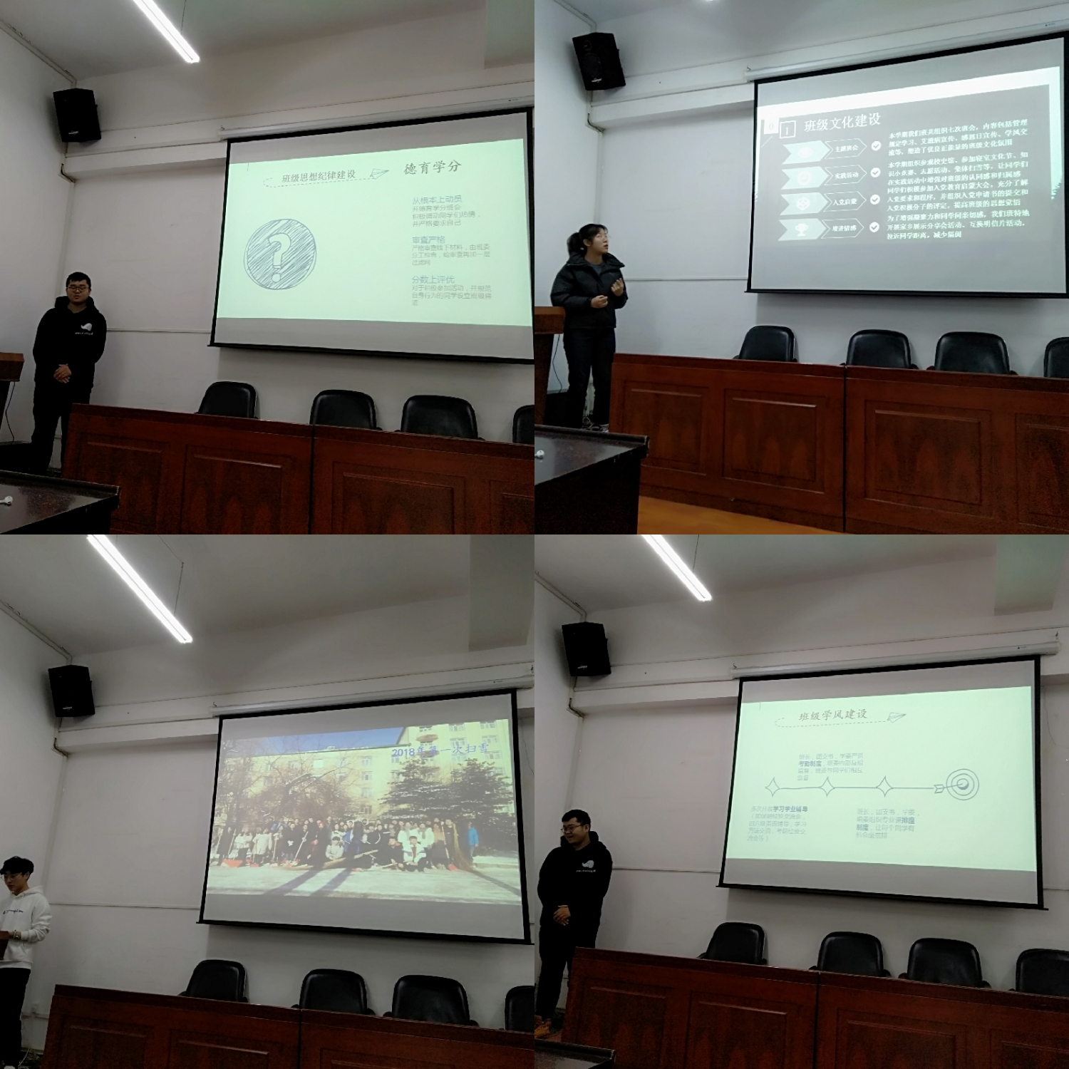 为加强2018级班团组织建设,时梳理,总结和展示学期内的工作成果,打造更具凝聚力和向心力的班集体,2018级辅导员张博老师组织各班班长开展了学期工作述职大会,本次述职由2018级辅导员张博老师主持,五个专业的班长进行工作述职。