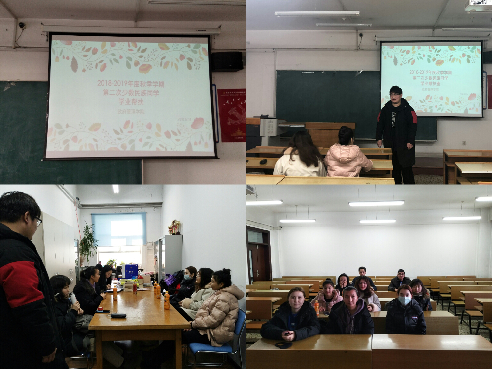 为帮助学院新疆籍少数民族同学解决学业问题,加强学习指导,政府管理学院于2018年12月14日13点30分在汇文楼527开展了少数民族同学学业帮扶活动,学院党委副书记夏欣、学业帮扶人2016级社会工作专业张震及学院各年级社会工作专业新疆籍少数民族同学参加本次活动。