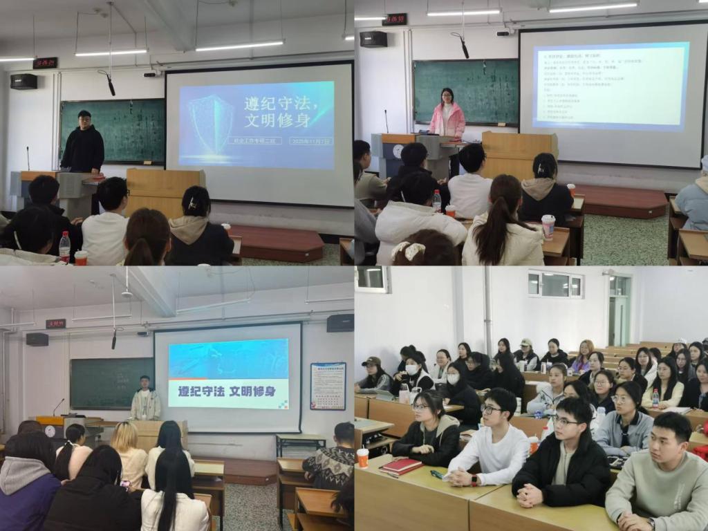 为强化同学们的规矩意识、提高个人综合素养,筑牢校园安全防线,政府管理学院面向全体本科生、研究生,组织开展了“遵纪守法,文明修身”主题班会,旨在引导学生明确行为边界,规范校园秩序,营造良好校园环境。