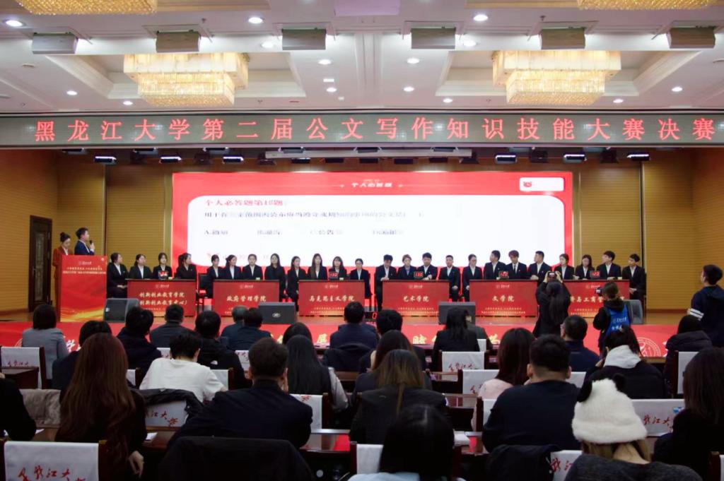 决赛设置必答题、抢答题、风险题三类题型,全方位考察选手的综合能力。评委组恪守评审准则,确保评审过程规范有序;赛场上,各参赛队伍紧扣赛事要求精准作答,以昂扬姿态投身激烈角逐,充分展现了黑大学子扎实的知识储备和过硬的实践能力;比赛现场紧张有序、精彩纷呈,生动彰显了我校师生的优良精神风貌。