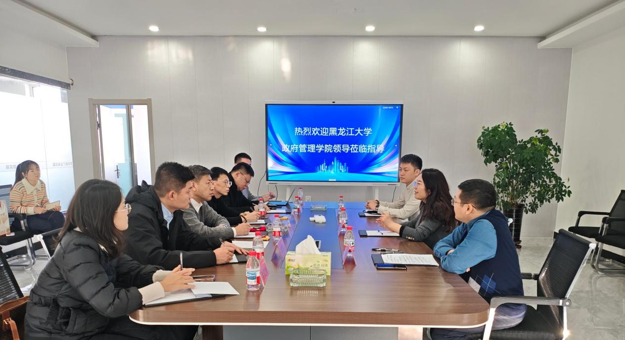 杨海鲲局长对袁洪英院长一行的到访表示欢迎,并对黑龙江大学在数字政府领域的学术研究与人才培养成果予以高度评价。他结合齐齐哈尔市数字政府建设实际,指出当前在数据资源共享、政务流程再造、数字治理效能提升等方面面临的痛点与难点,期望以此次调研为契机,充分依托学院的学术资源和人才优势,共同破解实践难题。双方就进一步深化合作事宜充分交换意见,重点围绕研究生产教融合工作站的规划布局、运行机制与保障措施等进行了细致研讨,并达成初步共识。